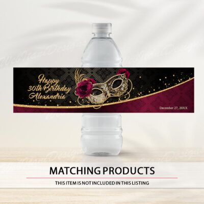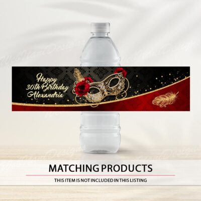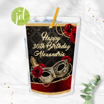 - Masquerade Juice Labels add dramatic flair to your birthday or themed event. With a luxurious black, red, and gold color scheme, roses, pearls, and a jeweled mask, these editable labels are perfect for DIY printing and instant party glamour. Try Demo, Copy and Paste into browser. https://jettemplate.com/demo/WC4997 This is a…