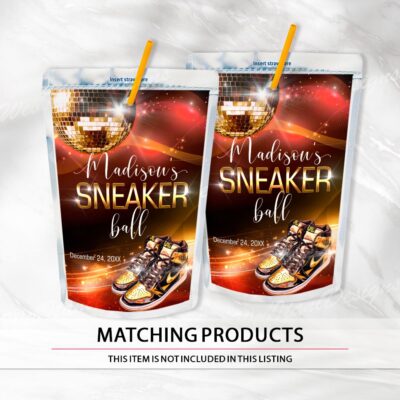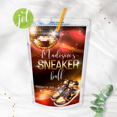 - Sneaker Ball Juice Labels add flair to your birthday drinks! These editable labels are ideal for a sneaker-themed bash with bold gold, disco lights, and teen party sparkle. Try Demo, Copy and Paste into browser. https://jettemplate.com/demo/ZB2400 This is a Digital Item that you'll be able to access and EDIT yourself…