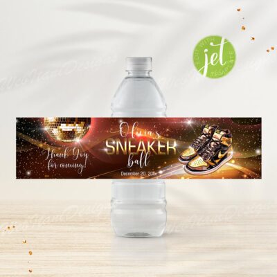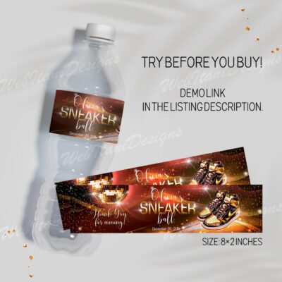 - Sneaker Ball Water Bottle Labels turn ordinary drinks into dazzling party decor! With gold, black, and disco glam design, these editable labels are a fun way to tie your 15th or 16th birthday theme together. Try Demo, Copy and Paste into browser. https://jettemplate.com/demo/NA1098 This is a Digital Item that you'll…
