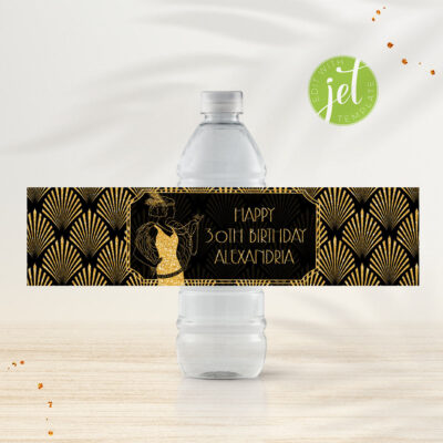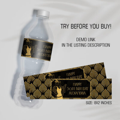 - Roaring 20s Water Bottle Labels will add a touch of elegance to your Gatsby-style celebration. Add your own words! Make your favors one of a kind! Try Demo, Copy and Paste into browser. https://jettemplate.com/demo/PG1233 This is a Digital Item that you'll be able to access and EDIT yourself through a…