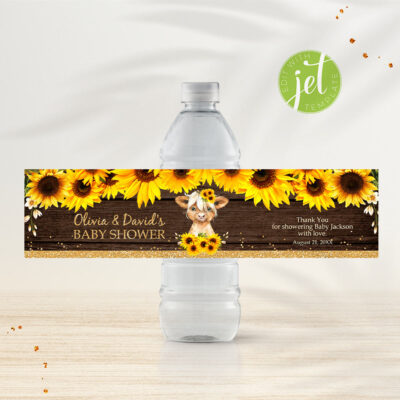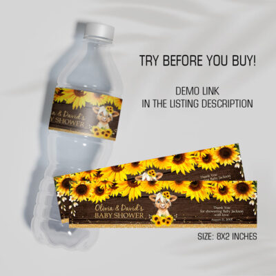 - Holy Cow Baby Shower Water Bottle Label is the perfect gender neutral party decoration for your little one’s special day. Add your own words! Make your favors one of a kind! Try Demo, Copy and Paste into browser. https://jettemplate.com/demo/UX7410 This is a Digital Item that you'll be able to access…
