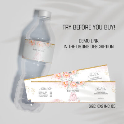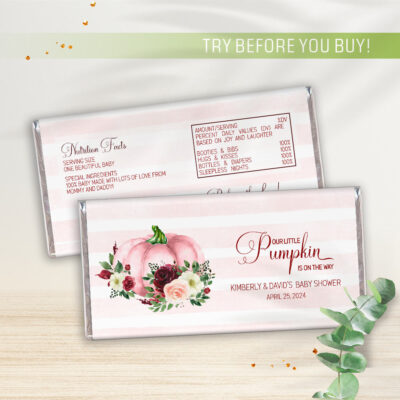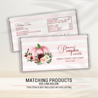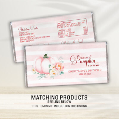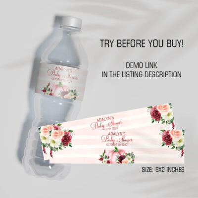 - Pink Pumpkin Baby Shower Water Bottle Labels are the perfect personalized touch for your Fall Baby Shower. Add your own words! Make your favors one of a kind! Try Demo, Copy and Paste into browser. https://jettemplate.com/demo/MD8300 This is a Digital Item that you'll be able to access and EDIT yourself…