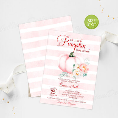 - Pink Pumpkin Baby Shower invitation perfect for an autumn celebration! This editable Girl baby shower invite features watercolor pumpkins, warm florals, and rustic leaves — ideal for a little pumpkin theme, fall baby shower, or thanksgiving baby shower. Try Demo, Copy and Paste into browser. https://jettemplate.com/demo/NH8666 This is a Digital…