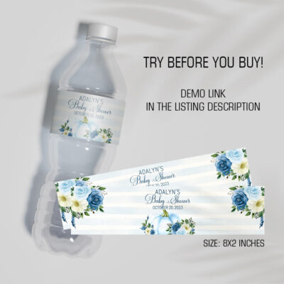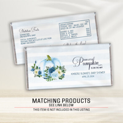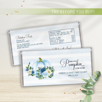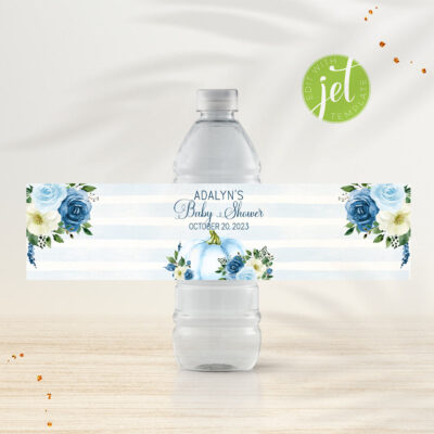 - Blue Pumpkin Baby Shower Water Bottle Labels are the perfect personalized touch for your Fall Baby Shower. Add your own words! Make your favors one of a kind! Try Demo, Copy and Paste into browser. https://jettemplate.com/demo/LH9102 This is a Digital Item that you'll be able to access and EDIT yourself…