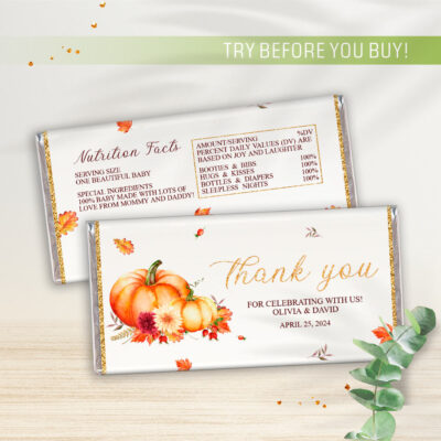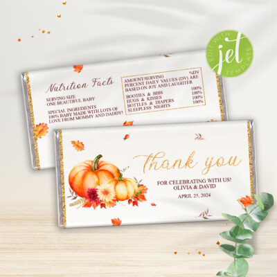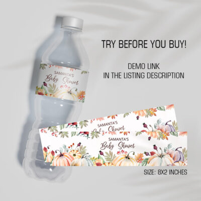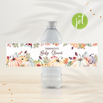 - Pastel Pumpkin Baby Shower Water Bottle Labels are the perfect personalized touch for your Fall Baby Shower. Add your own words! Make your favors one of a kind! Try Demo, Copy and Paste into browser. https://jettemplate.com/demo/NL3385 This is a Digital Item that you'll be able to access and EDIT yourself…