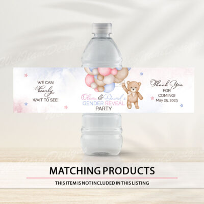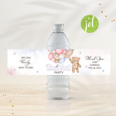 - Bear Gender Reveal Water Bottle Labels are perfect for any occasion or Bear Themed Baby event! Try Demo, Copy and Paste into browser. https://jettemplate.com/demo/UZ1137 This is a Digital Item that you'll be able to access and EDIT yourself through a link sent to your email.