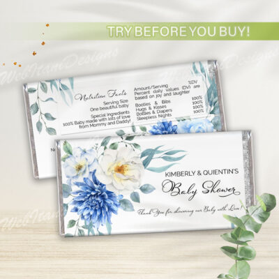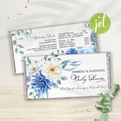 Blue Floral Baby Shower Chip Bag – Printable Snack Wrapper for Boy Shower