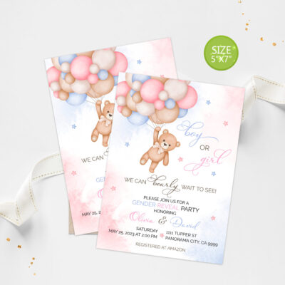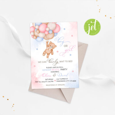 - Bear Gender Reveal Invitation Template with balloons are perfect for your Gender Reveal party! Add your own words! Make your favors one of a kind of ANY event! Try Demo, Copy and Paste into browser. https://jettemplate.com/demo/GZ2805 This is a Digital Item that you'll be able to access and EDIT yourself…