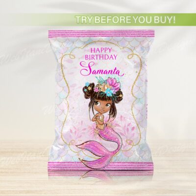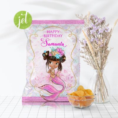 - Pink Mermaid Chip Bag Template to create fun and unique party favors! Personalize, download, and print at home for a magical under-the-sea celebration. Try Demo, Copy and Paste into browser. https://jettemplate.com/demo/QY1230 This is a Digital Item that you'll be able to access and EDIT yourself through a link sent to…