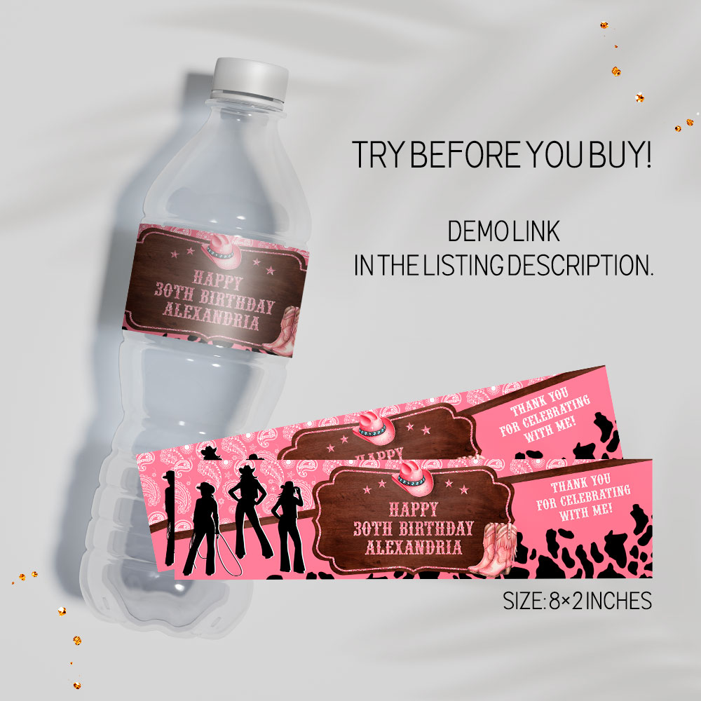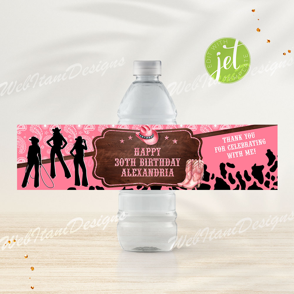 Editable Water Bottle Labels are size 8″x2″. Personalized Water Bottle Labels are perfect for Rodeo Birthday Party! Add your own words! Make your favors one of a kind of ANY event!