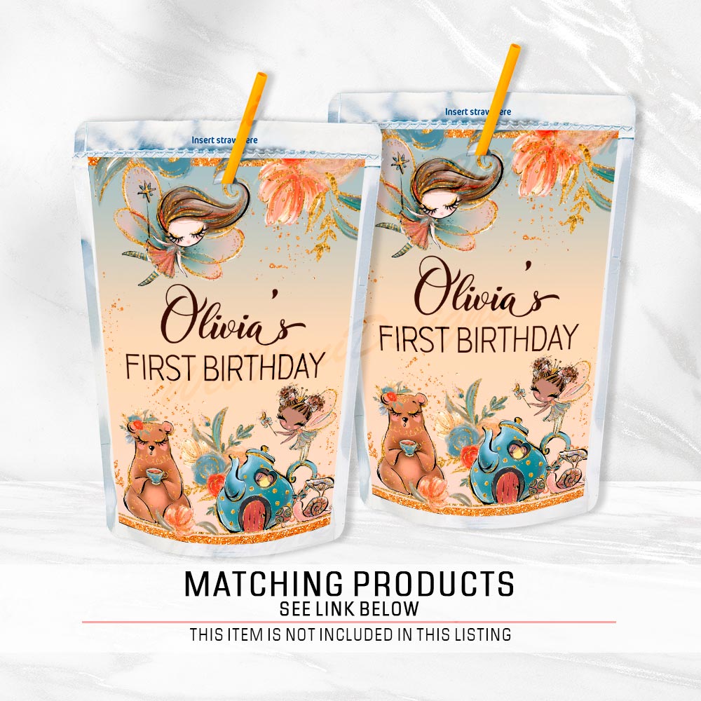 Pair it with matching fairy chip bags, candy bar wrappers, and juice pouch labels for a coordinated celebration.