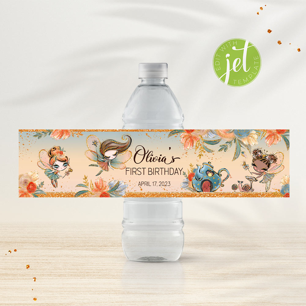 Fairy water bottle labels are the perfect touch for a magical birthday party. This editable fairy template lets you customize names, dates, and colors to match your theme.