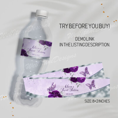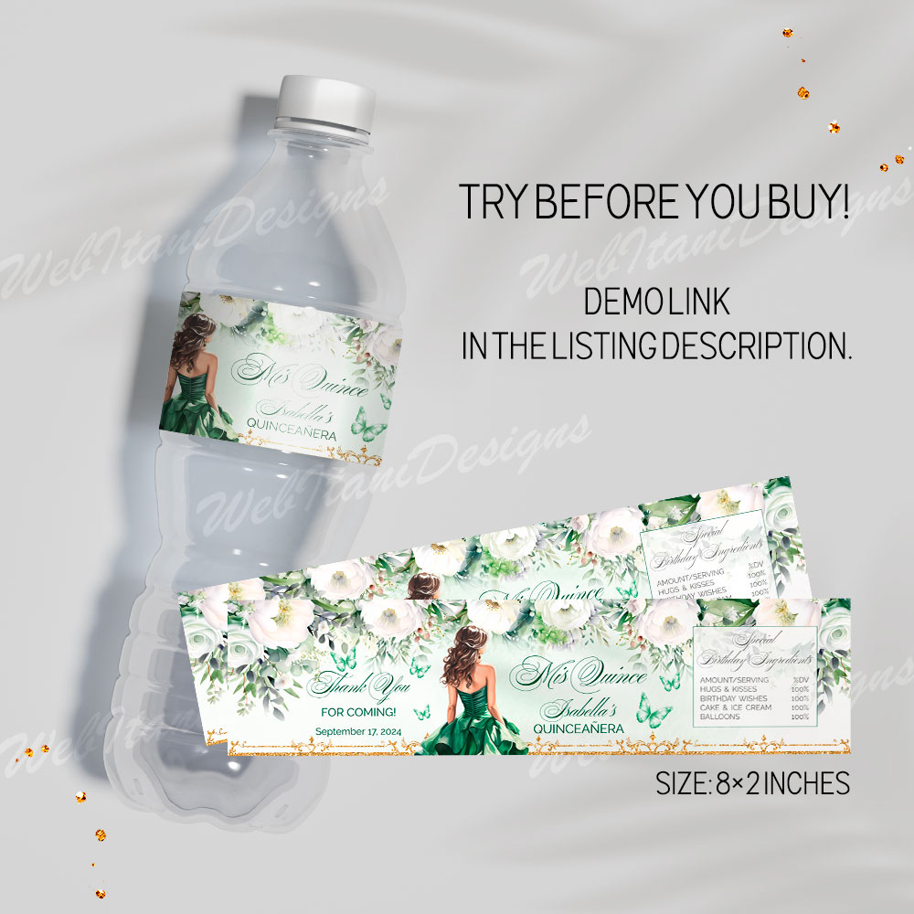 ★Copy and paste the URL below to the template demo Green Gold Quinceanera water bottle labels: