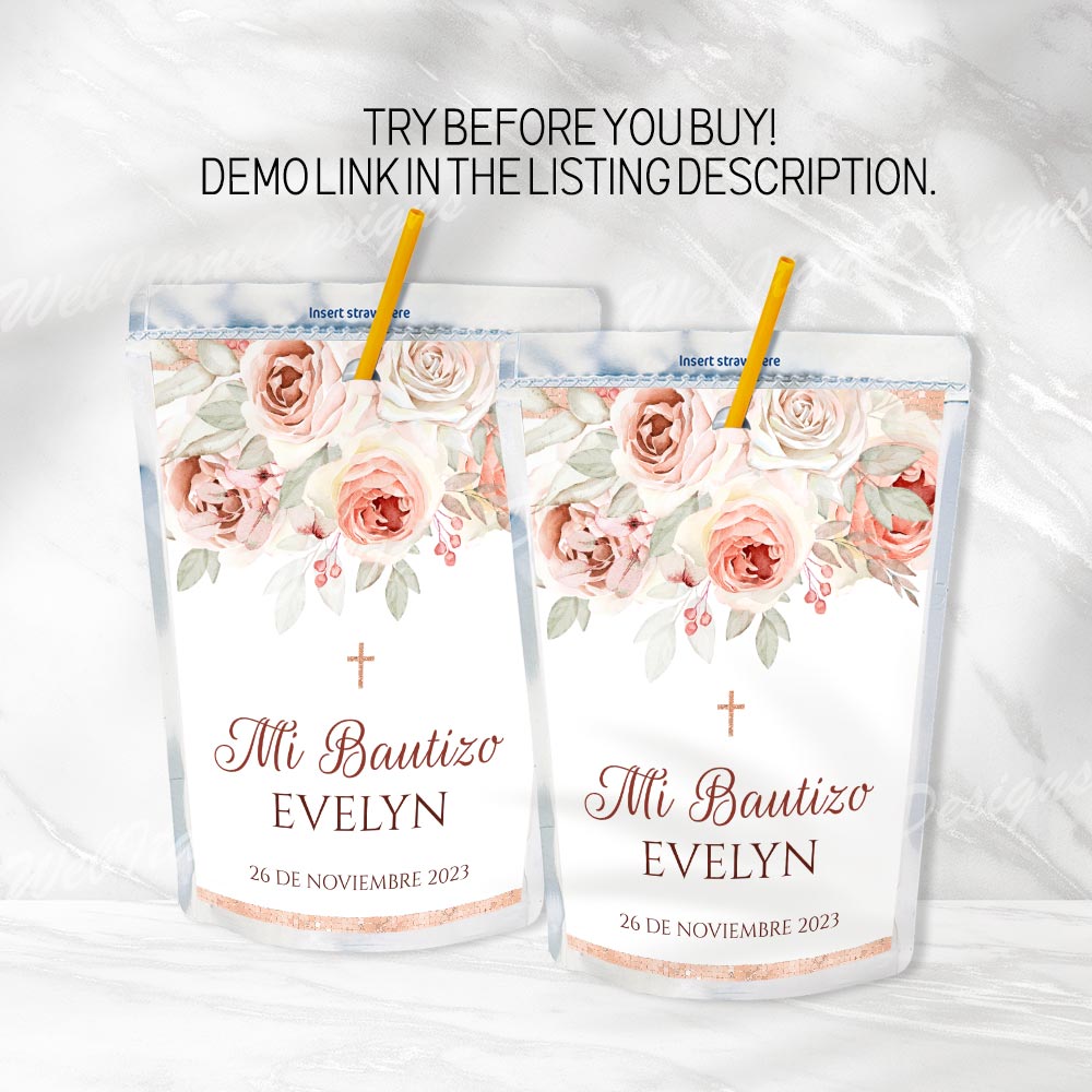 ★Copy and paste the URL below to the template demo Mi Bautizo Juice Labels: