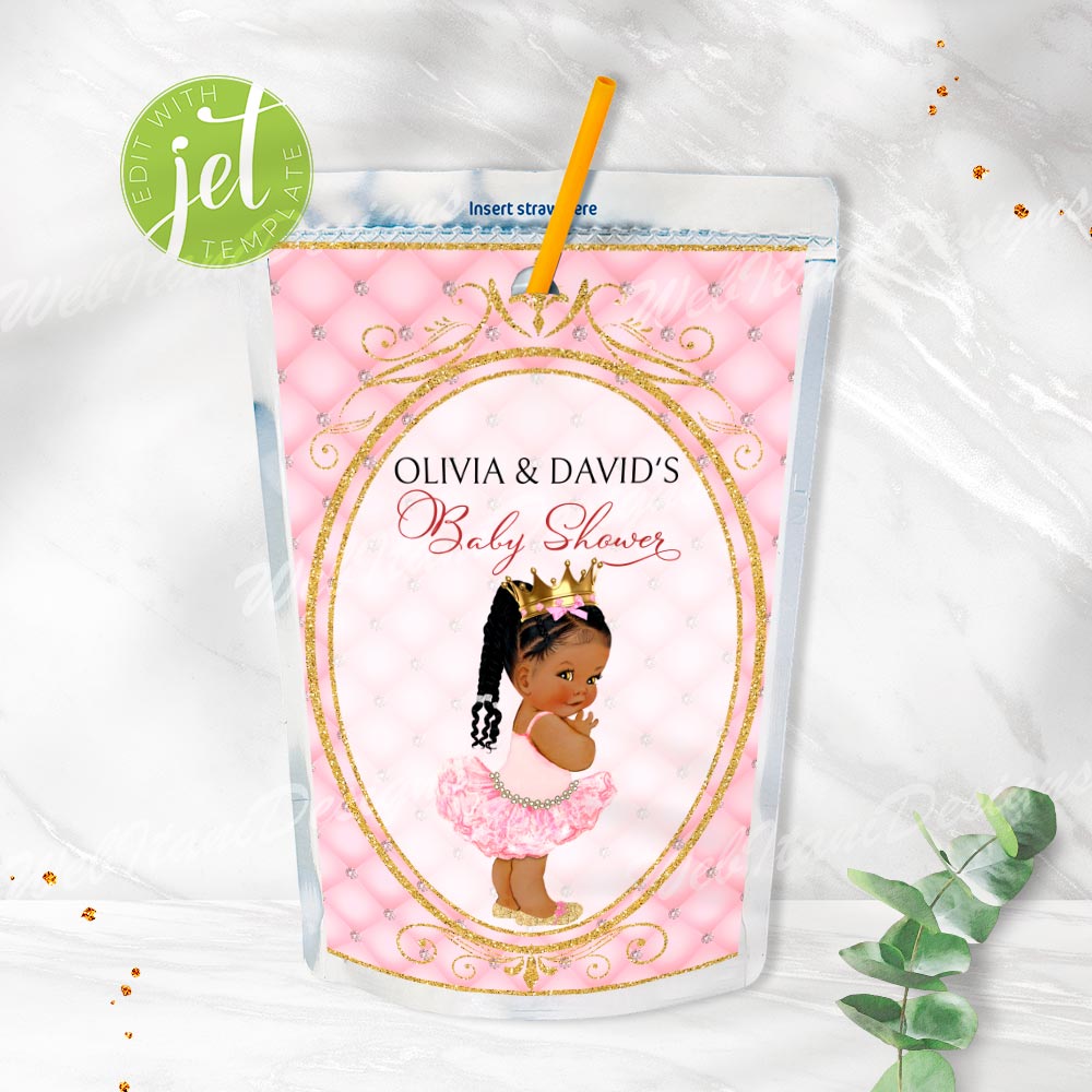 Pink Princess Baby Shower Juice labels for Girl Baby shower, ideal for a your party.