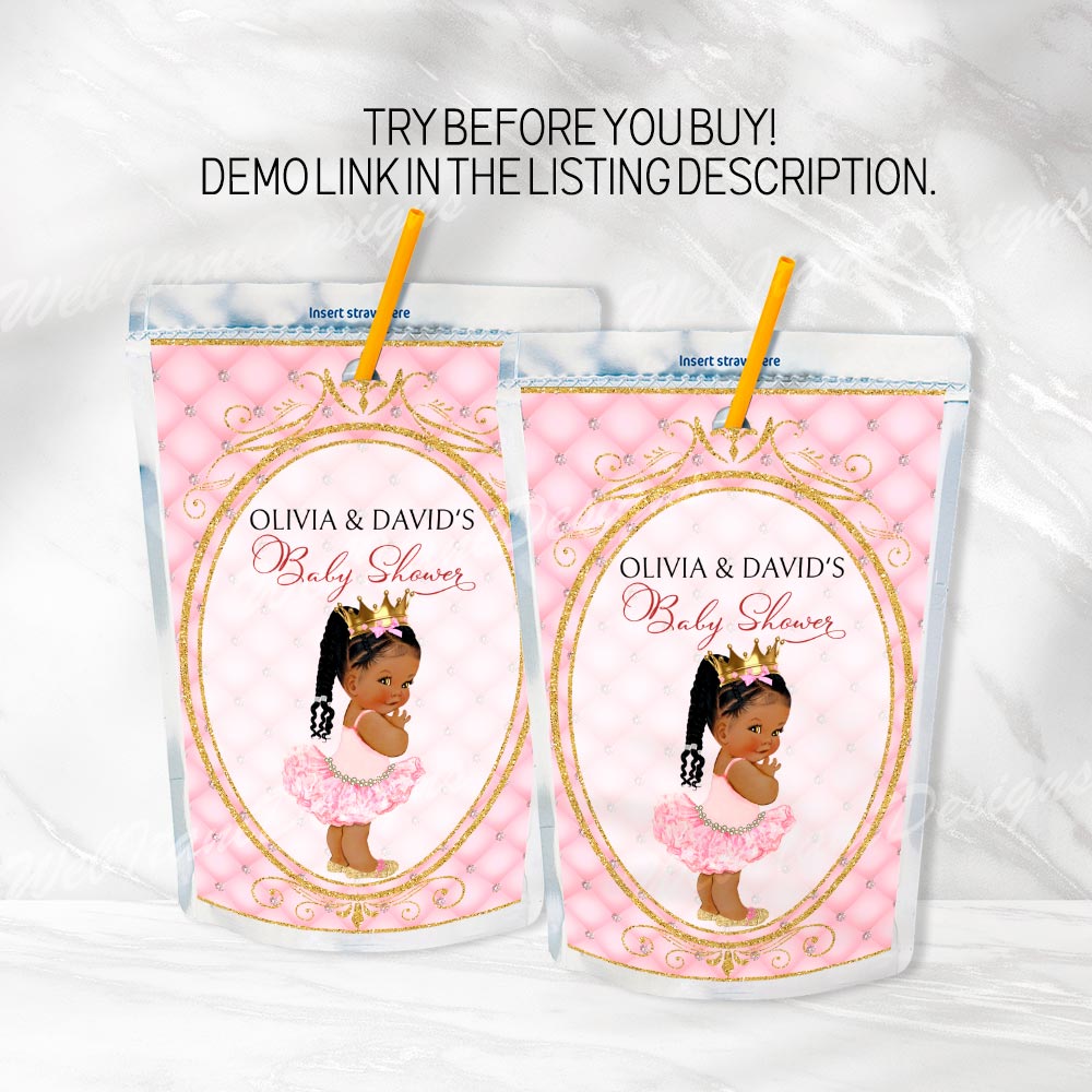★Copy and paste the URL below to the template demo Pink Princess Baby Shower Juice labels: