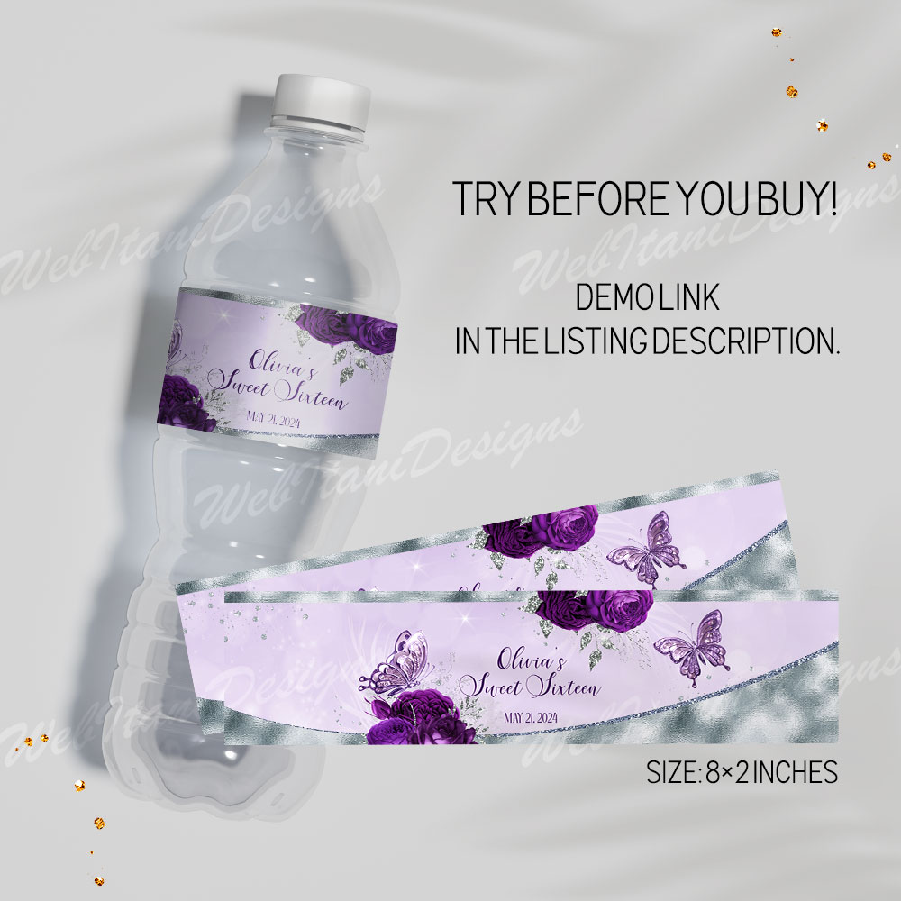 ★Copy and paste the URL below to the template demo Quinceañera Water Bottle Labels:
