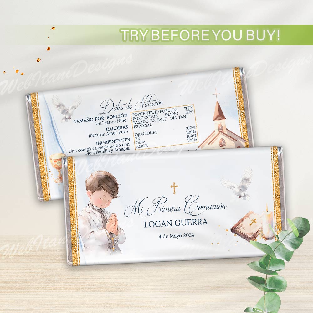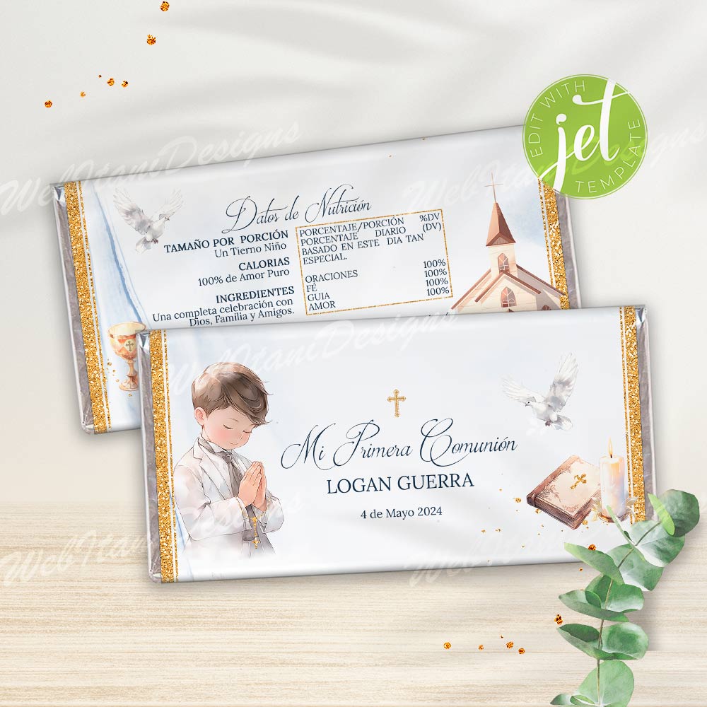 Spanish Candy Bar Wrapper are perfect for Boy First Holy Communion! Add your own words!