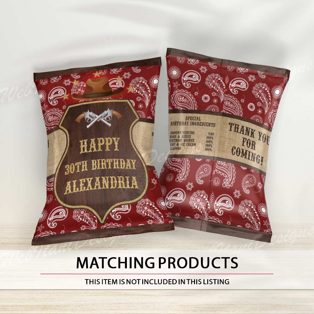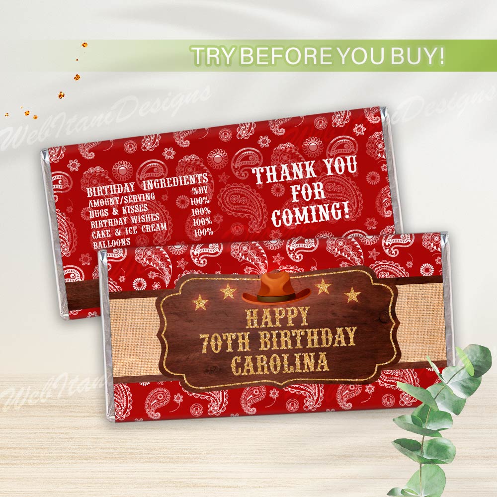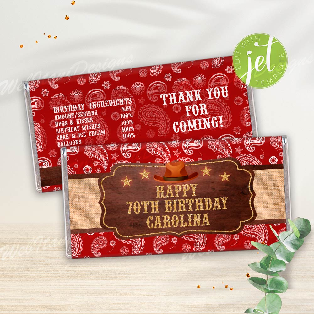 Do you want to style a Red western Party with party favors to remember? Use this editable Western candy bar wrappers template and surprise the party guests.