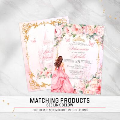 Pink Quinceañera water bottle labels – Editable Download, Pink Princess Theme