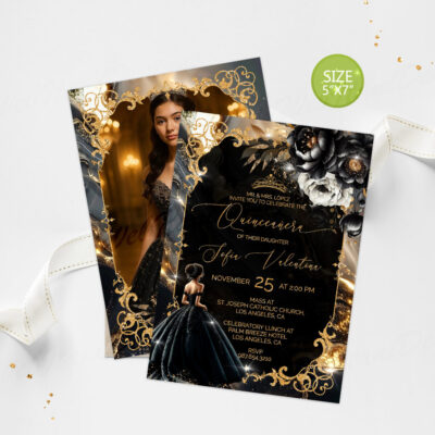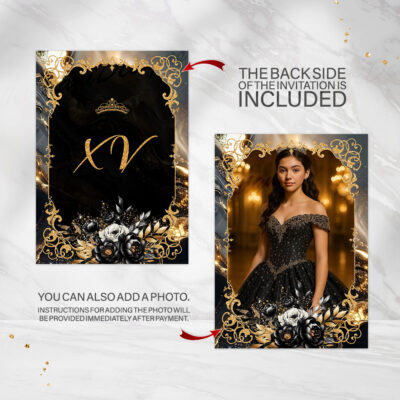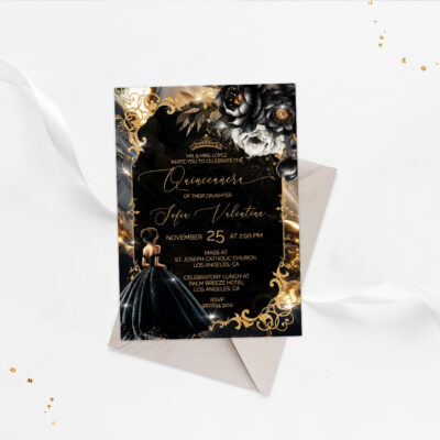 Black Gold Quinceañera Invitation – Glamorous Editable Template