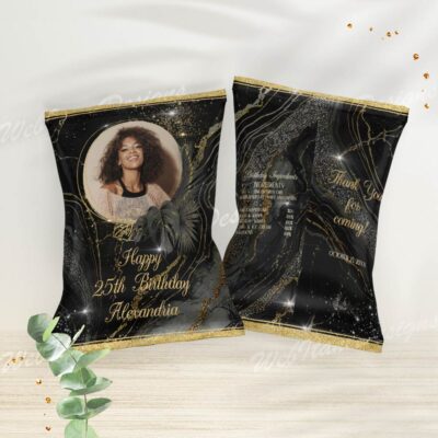 Personalized Birthday Chip bag for Black Gold Party