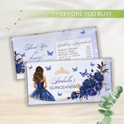 - Blue Gold Quinceanera Water Bottle Labels with flowers, butterflies, and a gold crown is perfect for a Sweet 16 or Mis Quince Años celebration. Try Demo, Copy and Paste into browser. https://jettemplate.com/demo/SX8554 This is a Digital Item that you'll be able to access and EDIT yourself through a link sent…