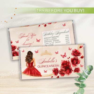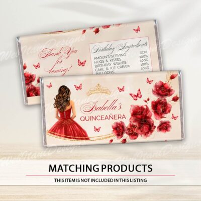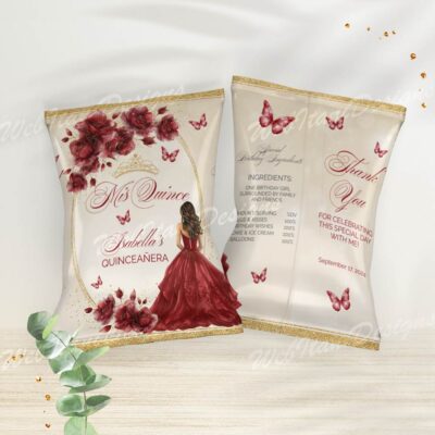 - Red Gold Quinceanera Chip Bag with flowers, butterflies, and a gold crown is perfect for a Sweet 16 or Mis Quince Años celebration. Try Demo, Copy and Paste into browser. https://jettemplate.com/demo/WR6455 This is a Digital Item that you'll be able to access and EDIT yourself through a link sent to…