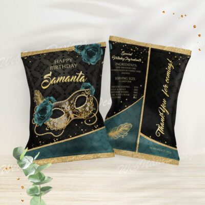Teal and Gold Editable Chip Bag for Masquerade Party