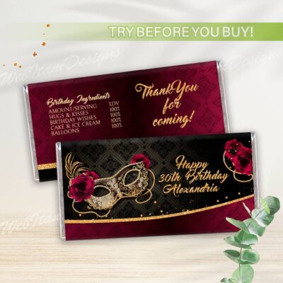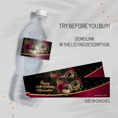 - Burgundy Gold Masquerade Ball Bottle Labels with Masquerade Mask and Roses are perfect for Birthday Party, Christmas! Editable Burgundy Masquerade Water Bottle Labels are size 8"x2". Try Demo, Copy and Paste into browser. www.jettemplate.com/demo/RH8232 This is a Digital Item that you'll be able to access and EDIT yourself through a…