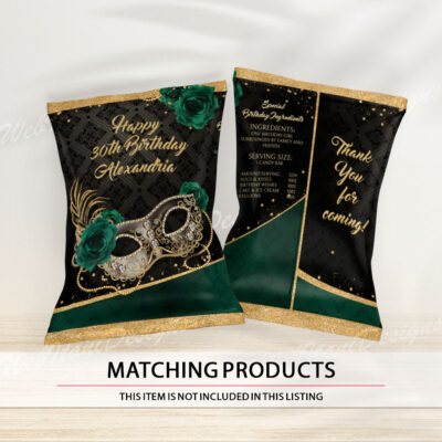 - Green Gold Chip bag for Masquerade Party with Masquerade Mask are perfect for any occasion or event! Add your own words! Make your favors one of a kind of ANY event! These are great for cake table decorations, party favors, and more. Try Demo, Copy and Paste into browser. https://jettemplate.com/demo/SW1739…