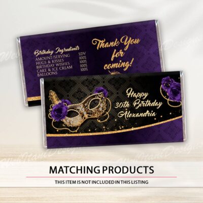 - Purple Gold Black Masquerade Ball chip bags with Masquerade Mask are perfect for any occasion or event! Add your own words! Make your favors one of a kind of ANY event! Try Demo, Copy and Paste into browser. https://jettemplate.com/demo/VG7617 This is a Digital Item that you’ll be able to access…